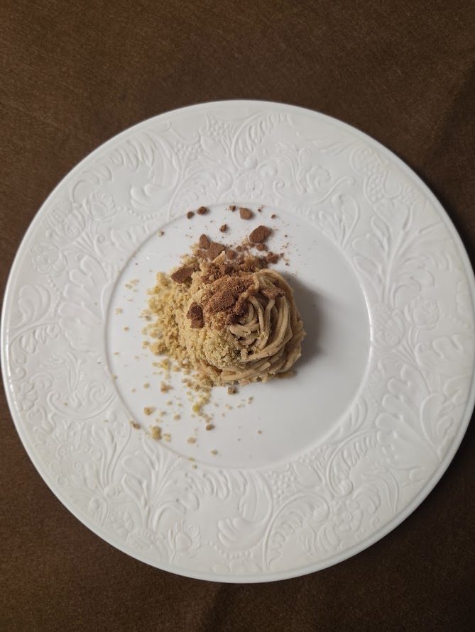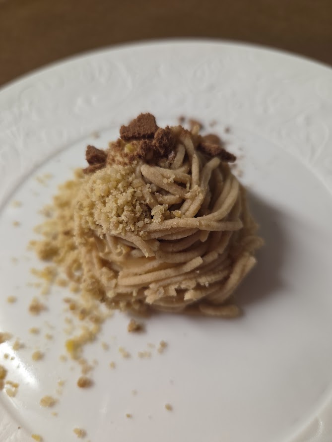 和栗のパウダーとチョコレートのメレンゲとともに。
